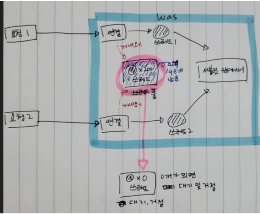 - 요청이 들어오면 쓰레드 풀에서 쓰레드를 꺼내서 사용한다.