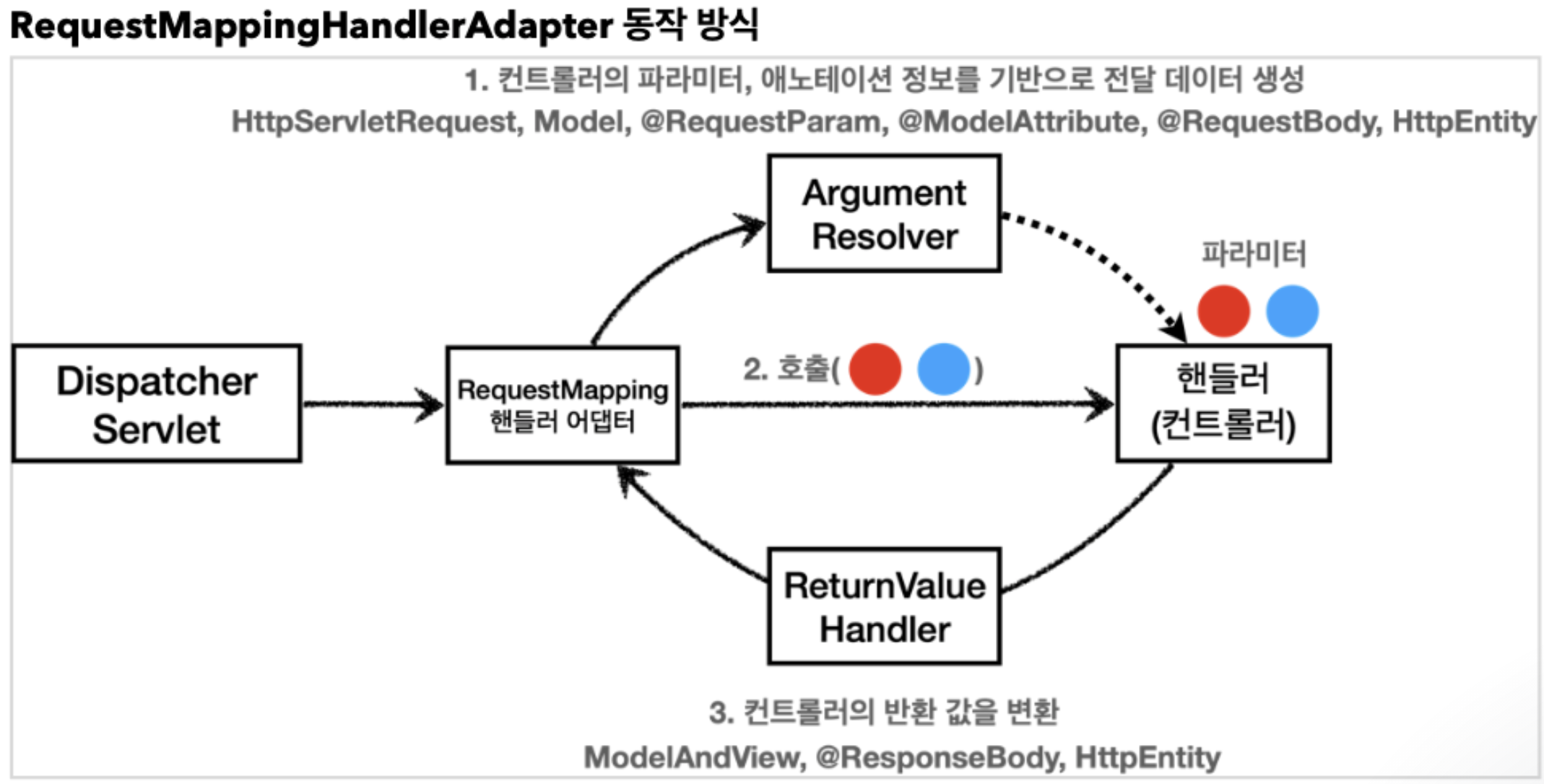 바로 @RequestMapping을 처리하는 핸들러 어댑터인 RequestMappingHandlerAdapter에서 사용된다.ArgumentResolver와 ReturnValueHandler를 살펴보자.