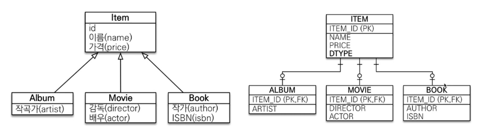 - 객체는 상속관계가 있지만 데이터베이스는 없다.