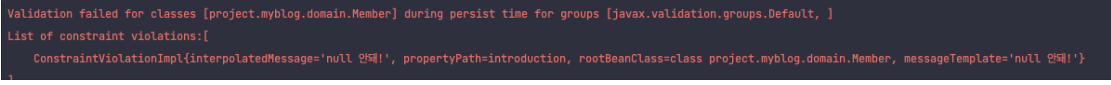 여기서ConstraintViolationException이 발생한다.