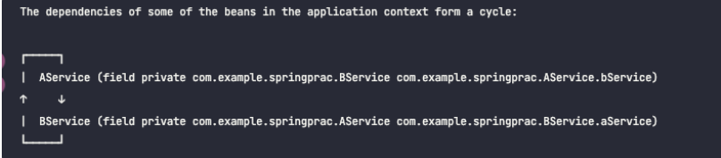 만약 순환 참조를 허용하려면 spring.main.allow-circular-references=true로 옵션을 주면된다.
