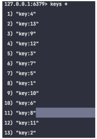 scan명령으로 사용하면 하나의 긴 keys 명령을 짧은 여러번의 명령으로 바꿀 수 있다.scan을 다시 명령하는 찰나의 순간에 다른 작업이 수행될 수 있기 때문이다.scan은 커서 방식으로 다음 커서를 지정하게 되고, 10개씩 key를 조회하게 된다.