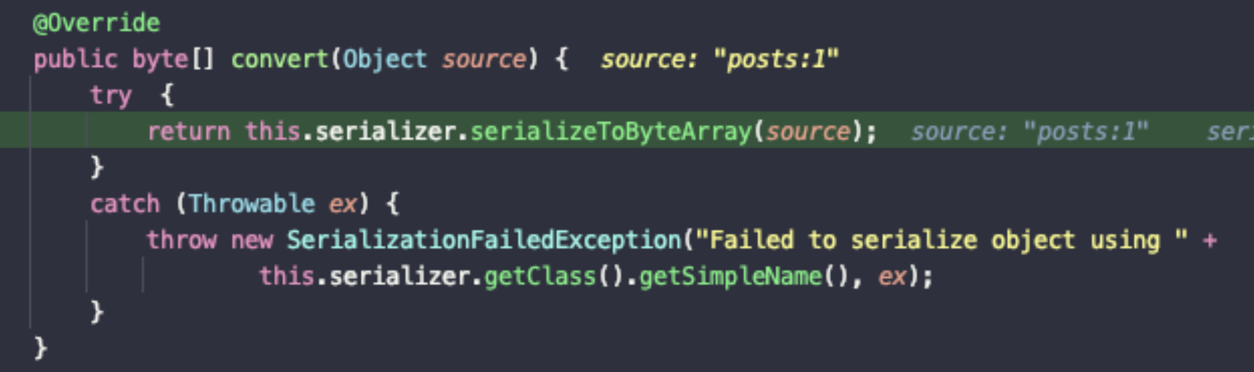 여기서 직렬화하는 내부 로직을 살펴보면, conver()가 있다. 여기를 살펴보자.