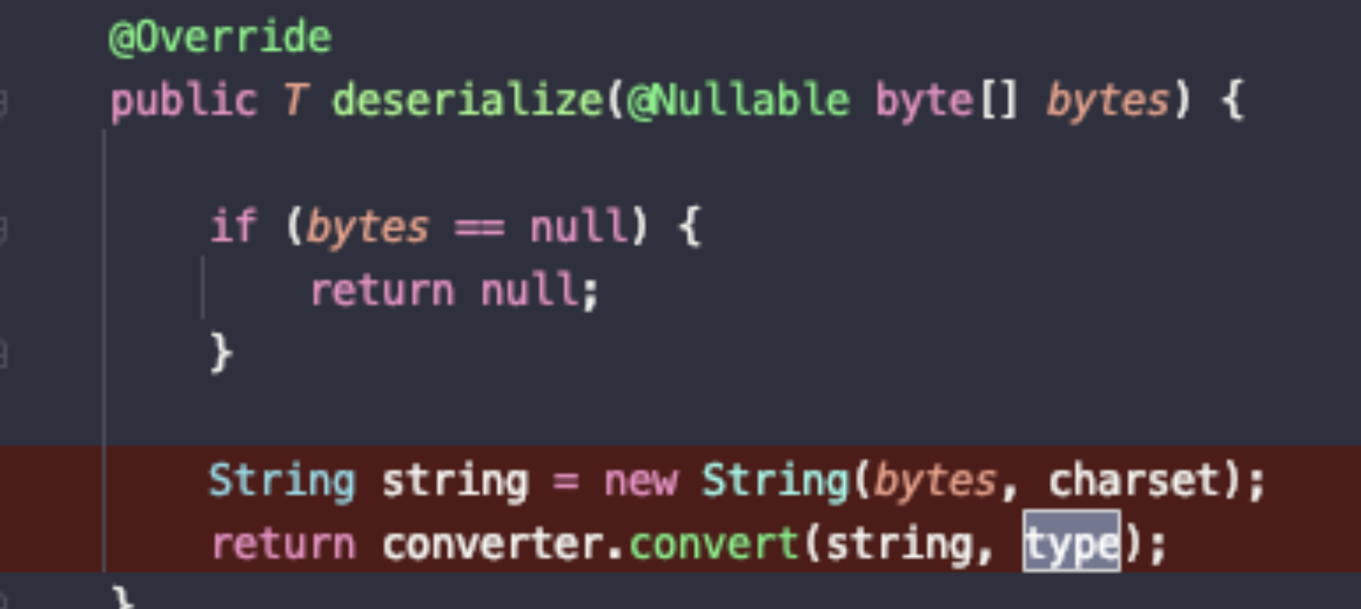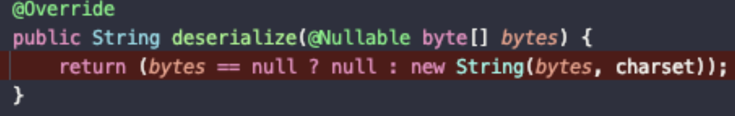}먼저 원인만 간단히 하자면 deserialize()가 String을 반환하고 있기 때문이었다.