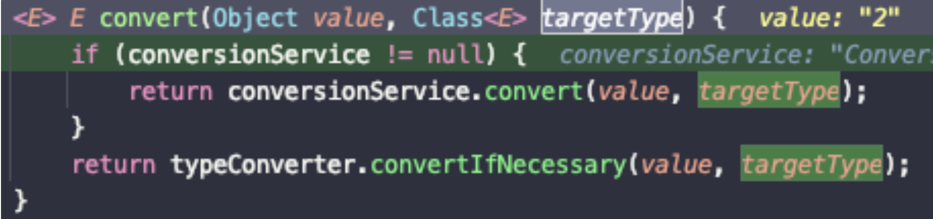 - conver()는 넘어온 클래스타입(Integer)로 컨버팅을 하고 해당 타입으로 반환한다.