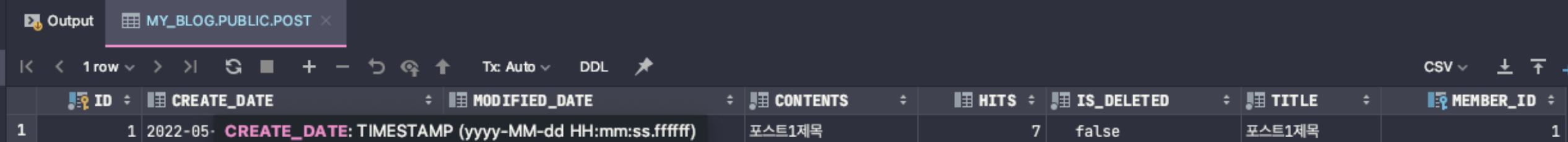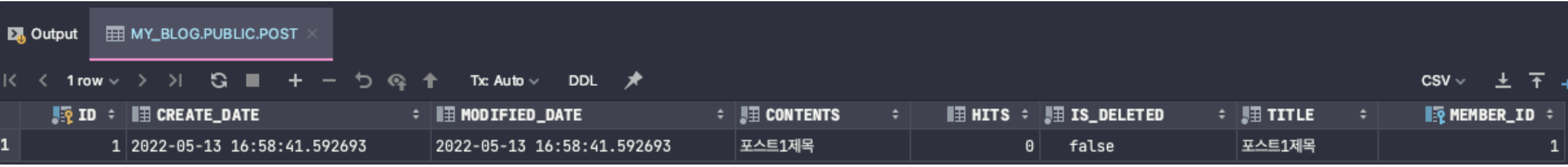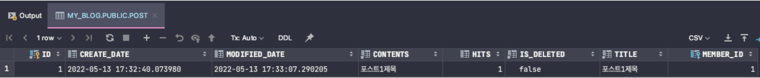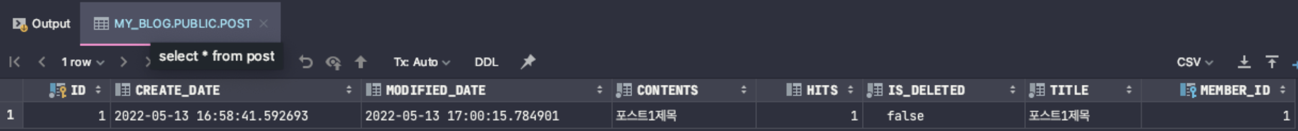 1번 포스트로 테스트를 진행했고, hits인 조회수는 0인 상태이다.