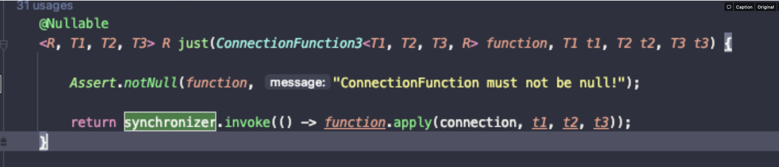 just()를 보면, synchronizer로 invoke()를 하고있다.