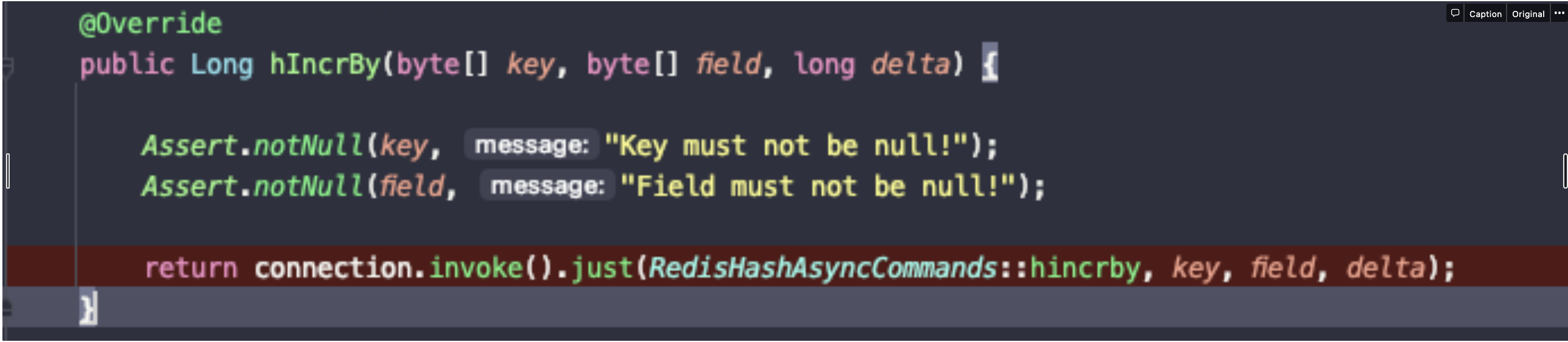 hIncrBy()를 살펴보면, just()를 실행하고 있다.